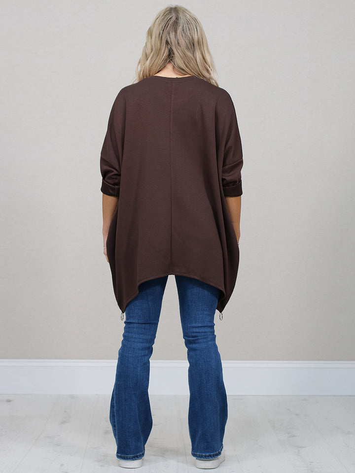 This oversized baggy T-shirt brings effortless lagenlook style with its plain, easygoing silhouette. Featuring a sparkling sequin ripped heart motif, crew neck, drop shoulders, rolled-up sleeves, and a stylish zipped hem, it offers comfort with a touch of standout detail perfect for ladies who love relaxed yet fashionable everyday wear.