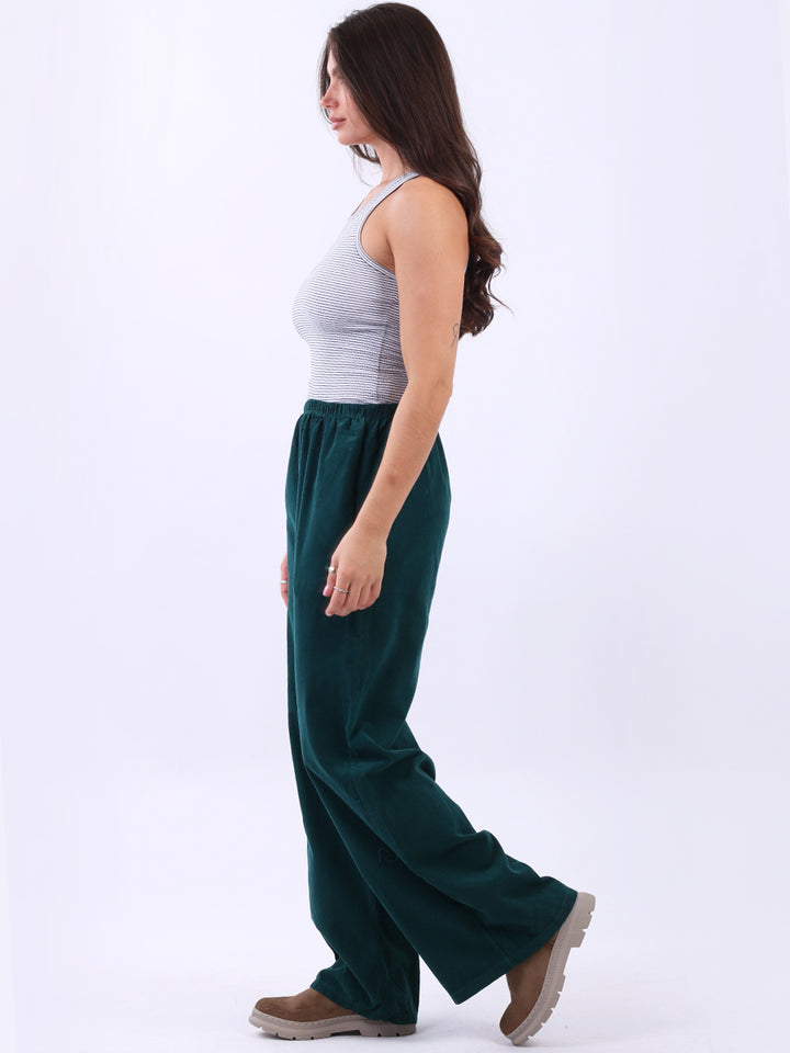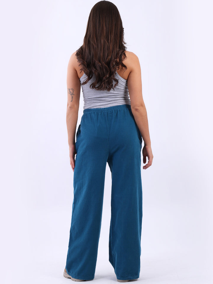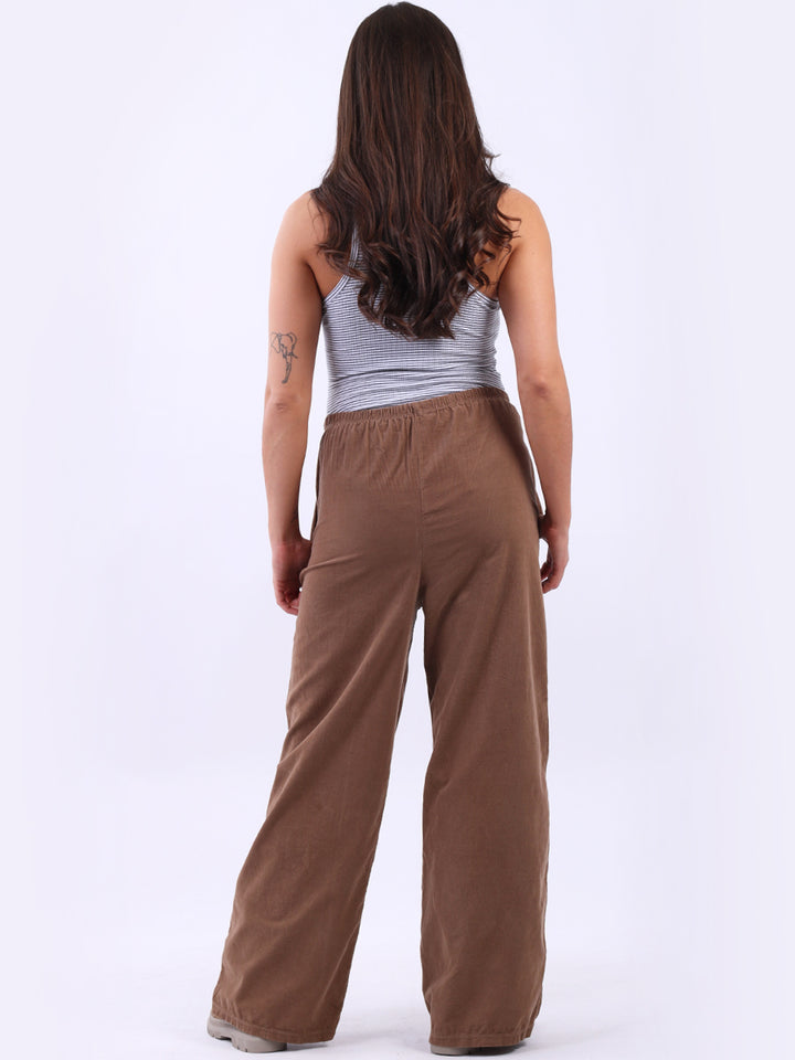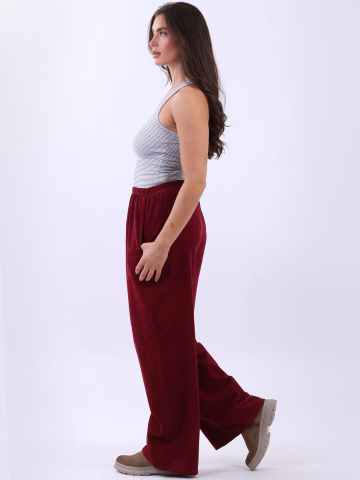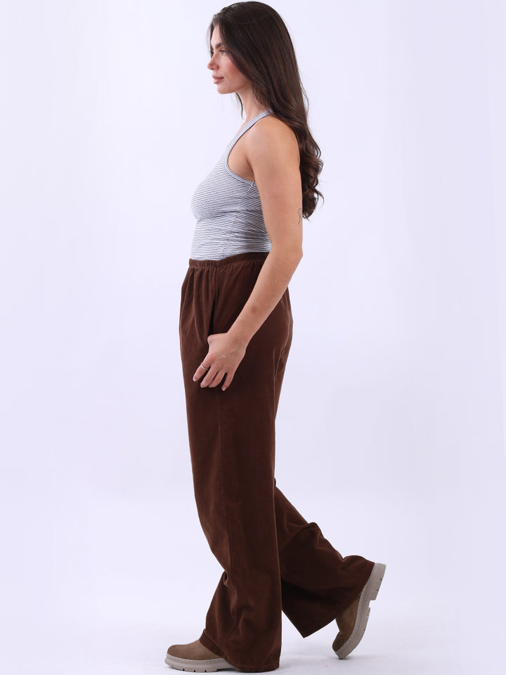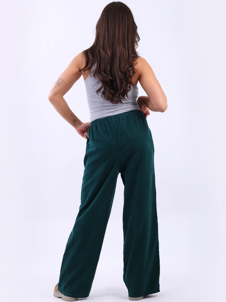 This solid corduroy wide-leg pant from Red Wholesale fashion store is made from pure cotton, offering a classy and decent choice for casual occasions. Featuring an elasticated waist and side pockets, this pairs beautifully with a cozy cardigan for a head-turning look.
