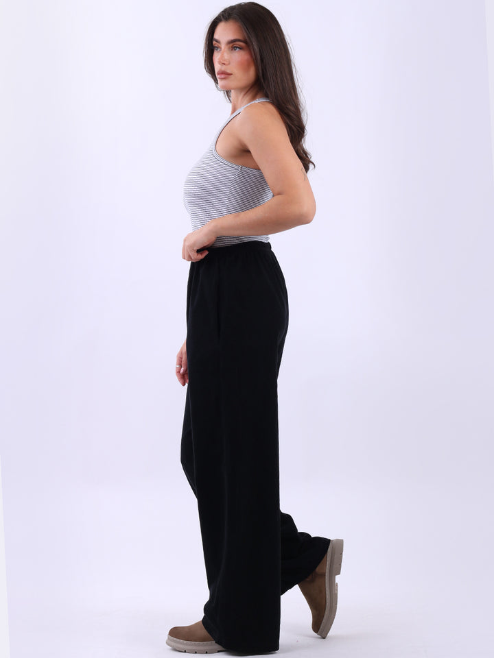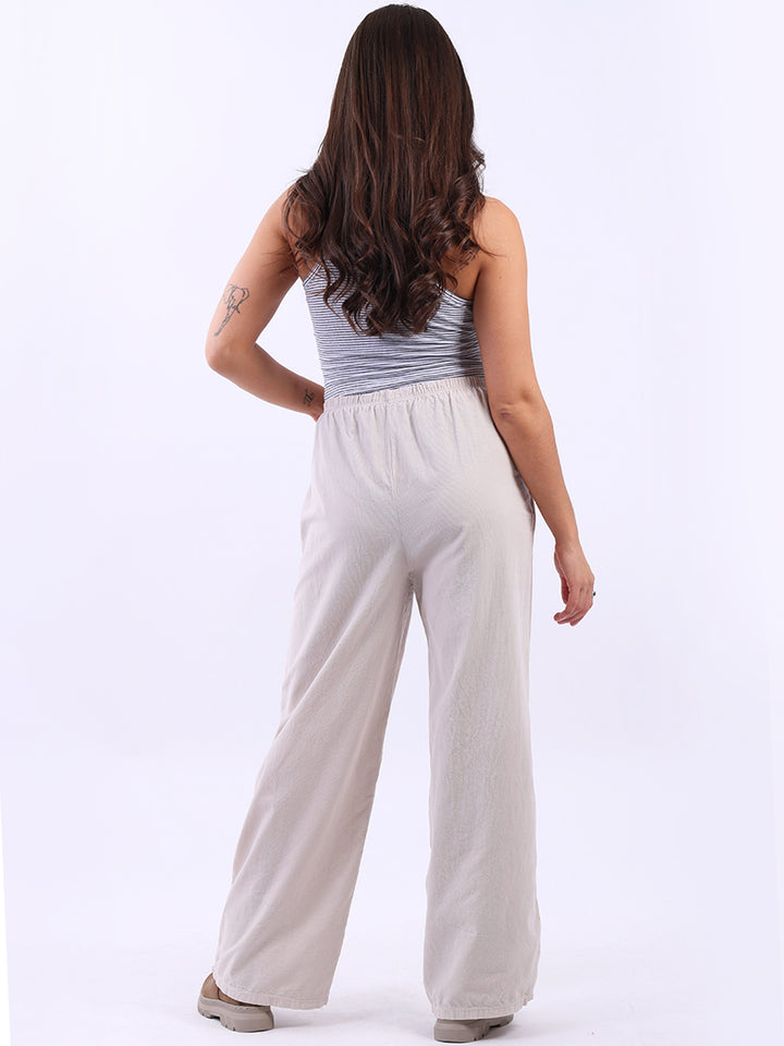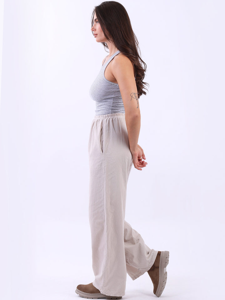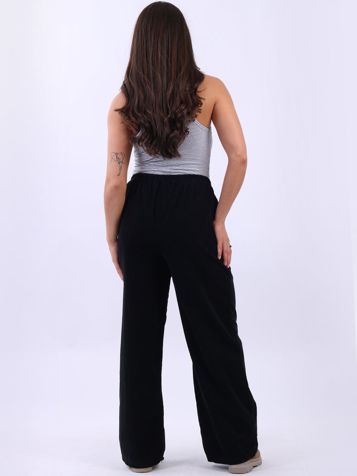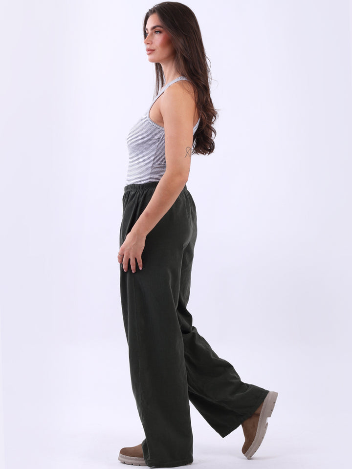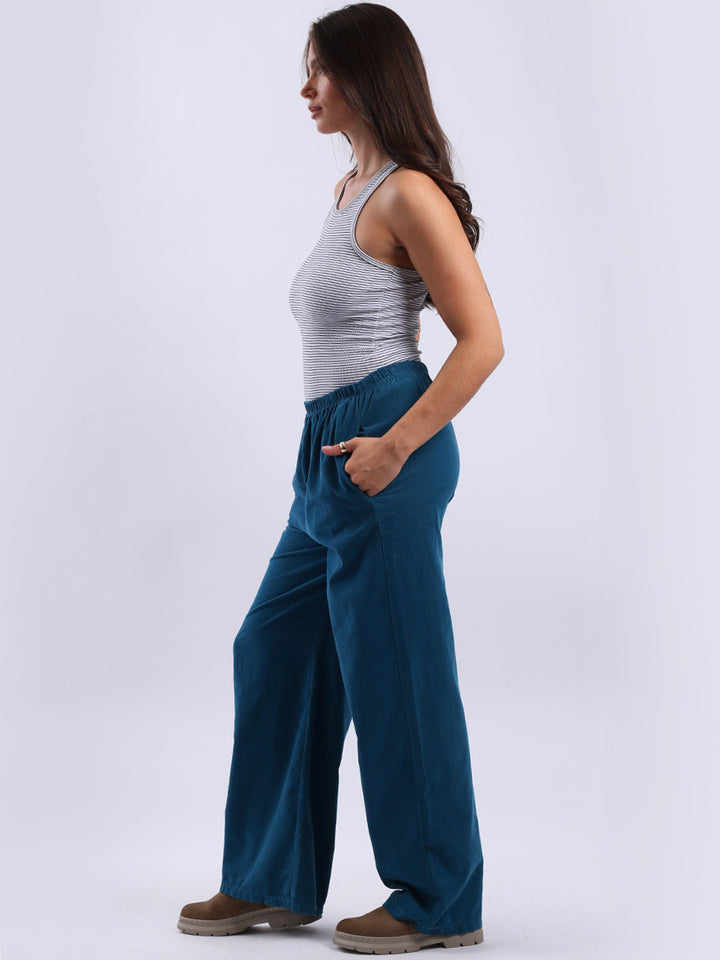 This solid corduroy wide-leg pant from Red Wholesale fashion store is made from pure cotton, offering a classy and decent choice for casual occasions. Featuring an elasticated waist and side pockets, this pairs beautifully with a cozy cardigan for a head-turning look.