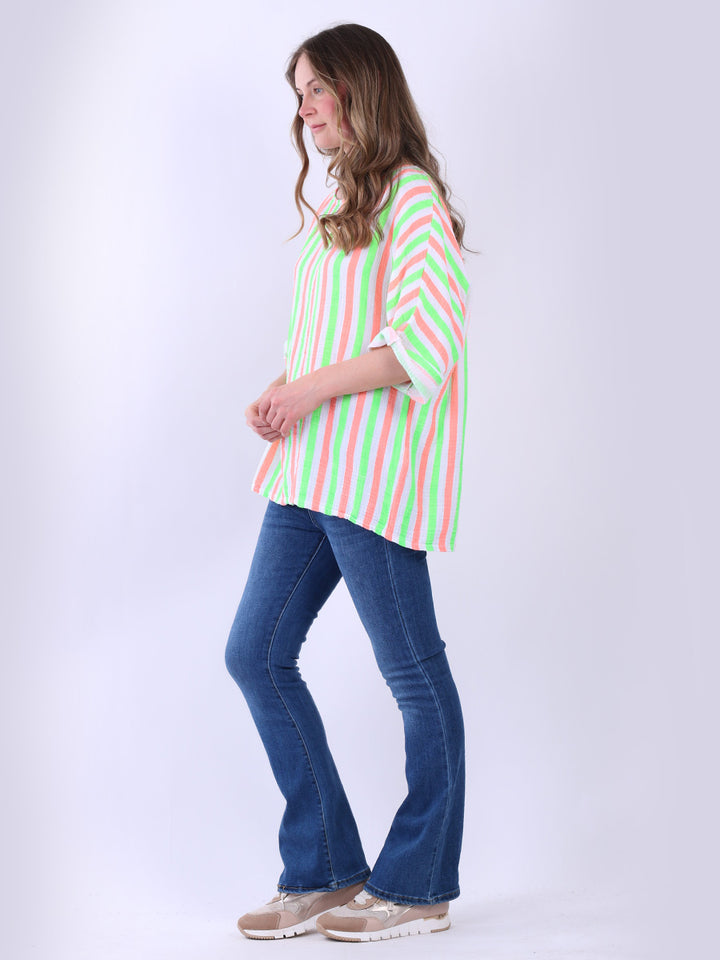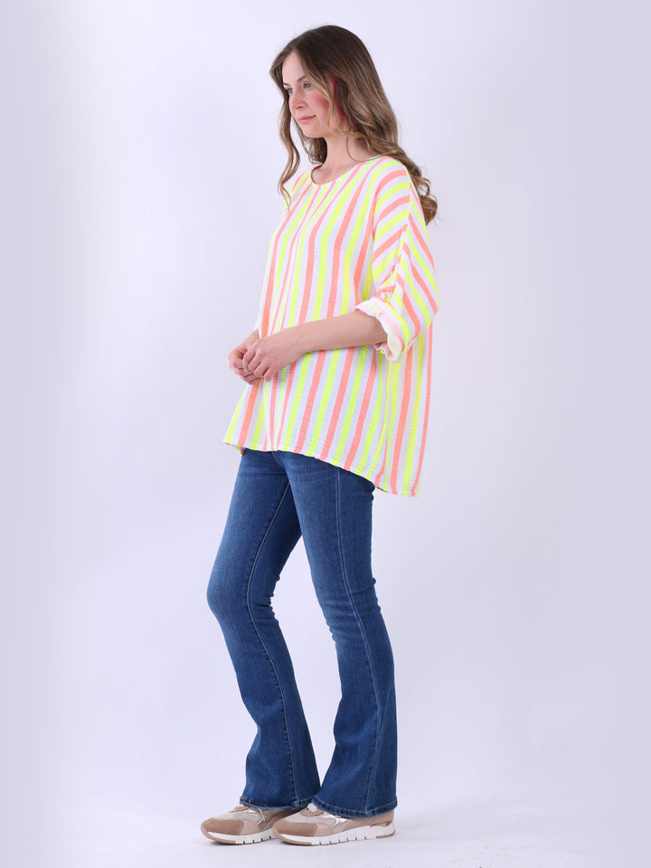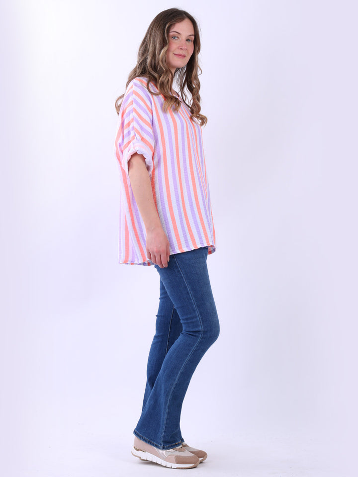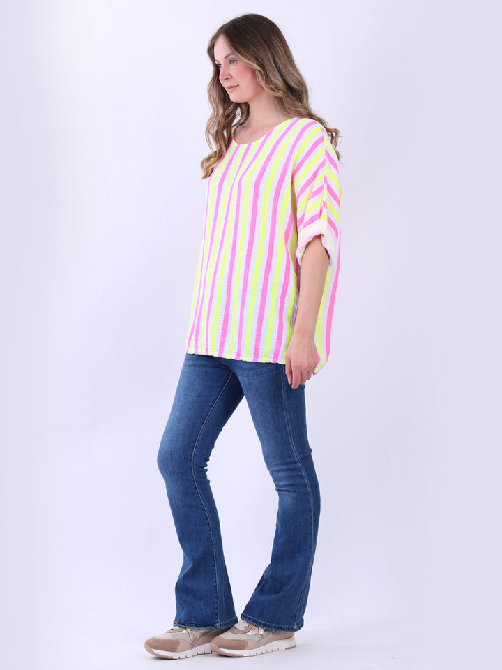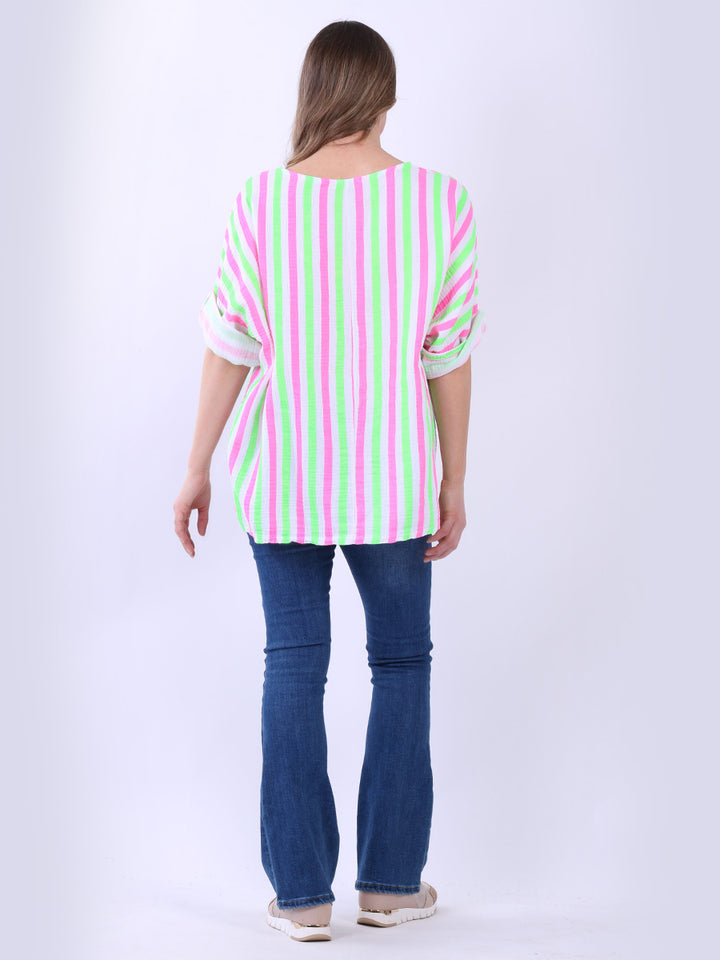 Bold stripes and soft cotton come together in this casual, loose-fit Italian top. Designed with a comfortable fit, it gives any summer wardrobe a playful twist. Designed for women who enjoy simple, oversized lagenlook style. This item is an excellent selection from Redwholesale's casual summer collection.