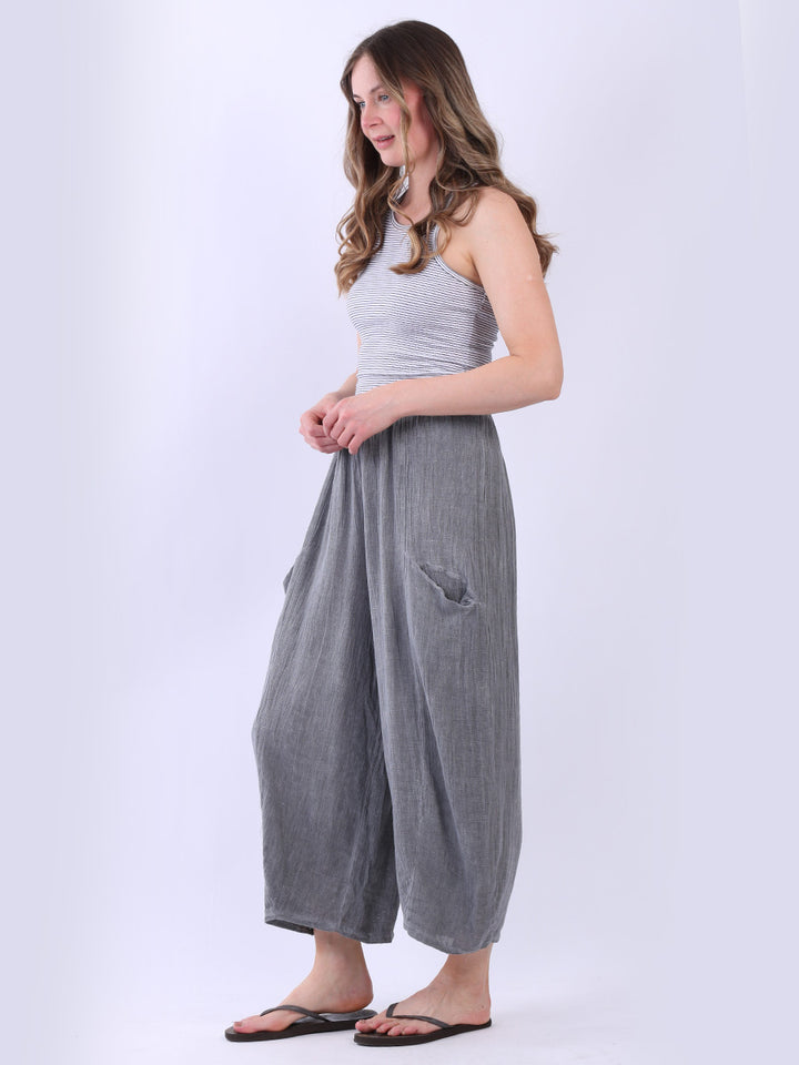 Roomy pockets and a laid-back style define these solid vintage-washed trousers. Made in Italy from breathable linen, these are a wonderful option for plus-size women looking for casual elegance with minimal effort.