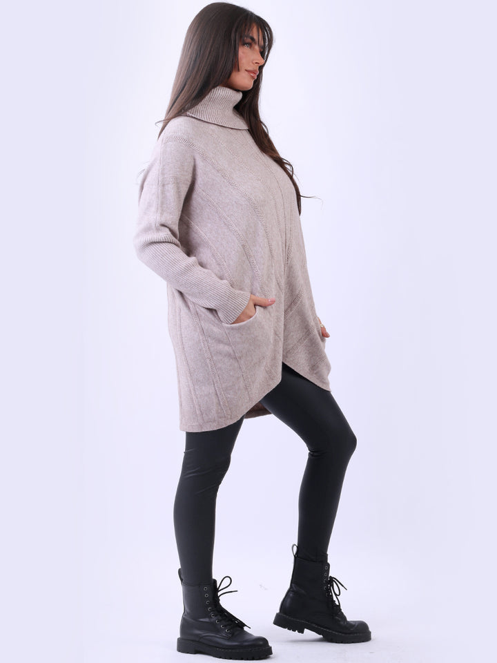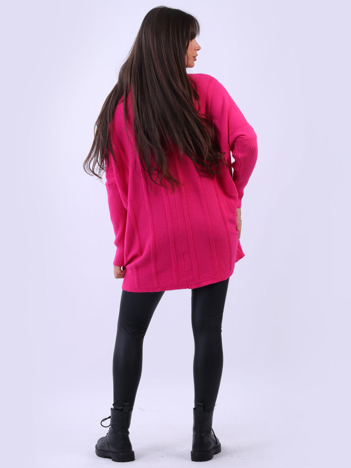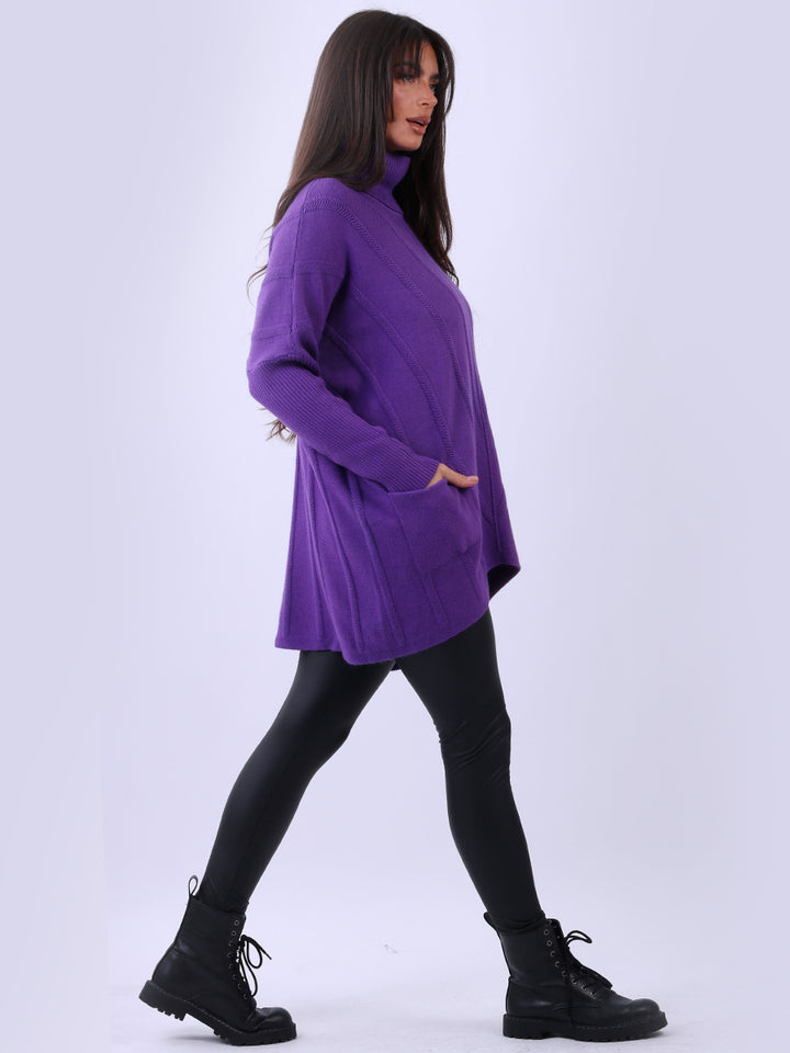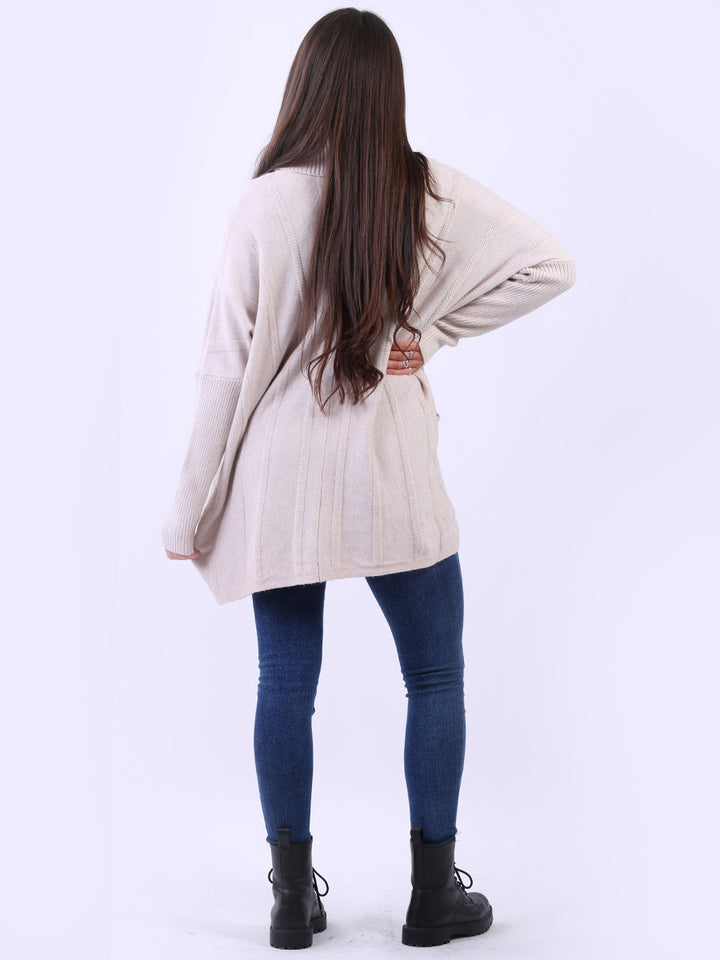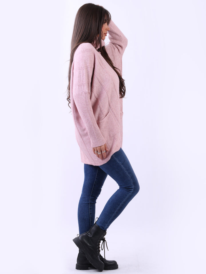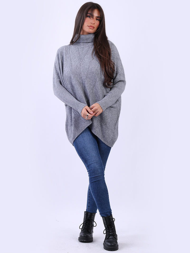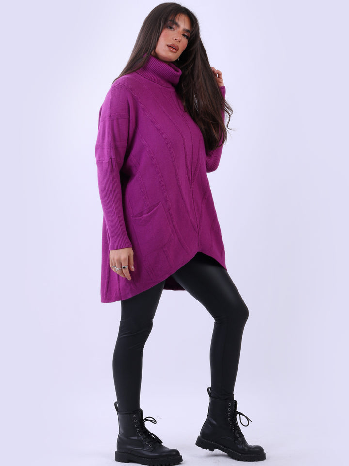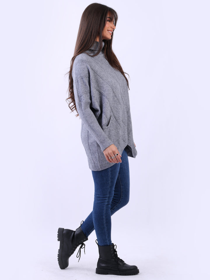 Clothes and jackets that impress and set a high standard for the ladies. Redwholesale loose fitted cable knit jumper has finest fabric that is chic and trendy with lush and characteristic cowl neckline, lagenlook plus size fit with functional front pockets and long sleeves. Earthy colors and bold finish that is highlight of the dressing up.