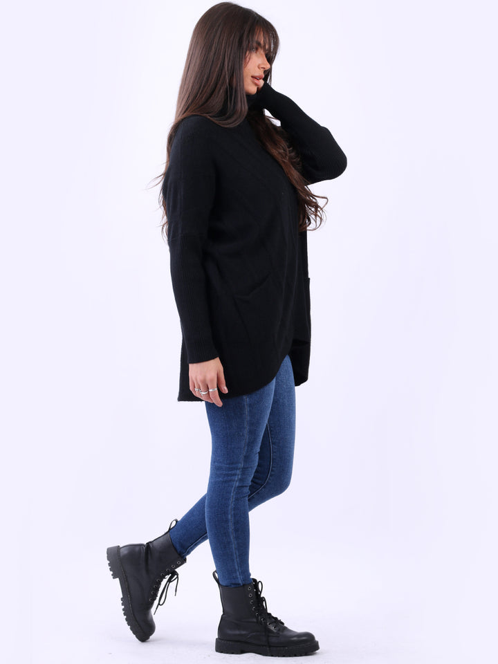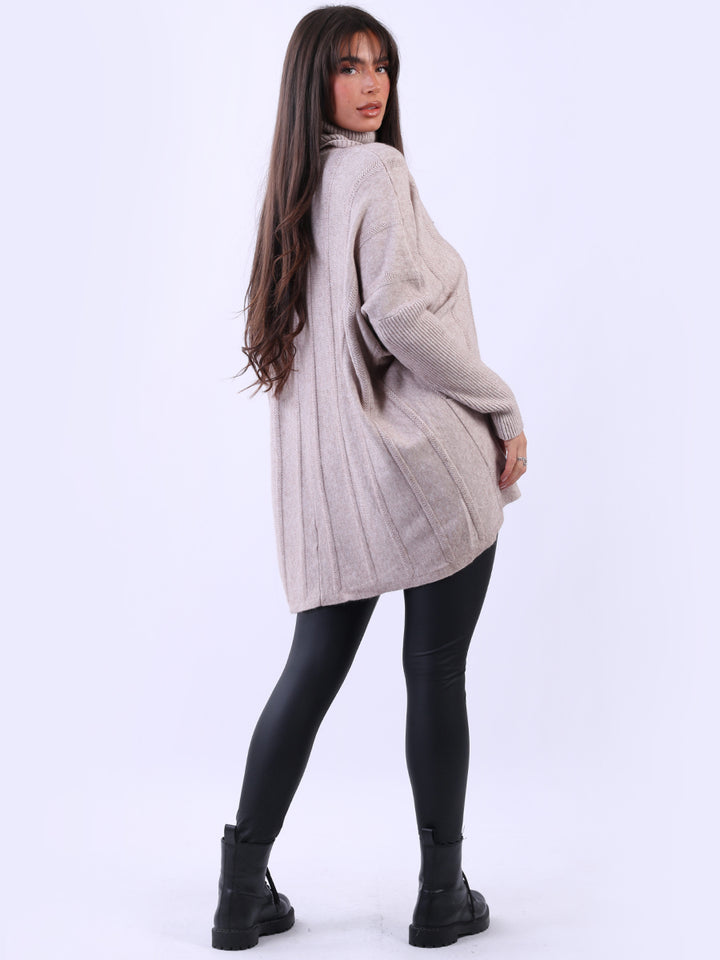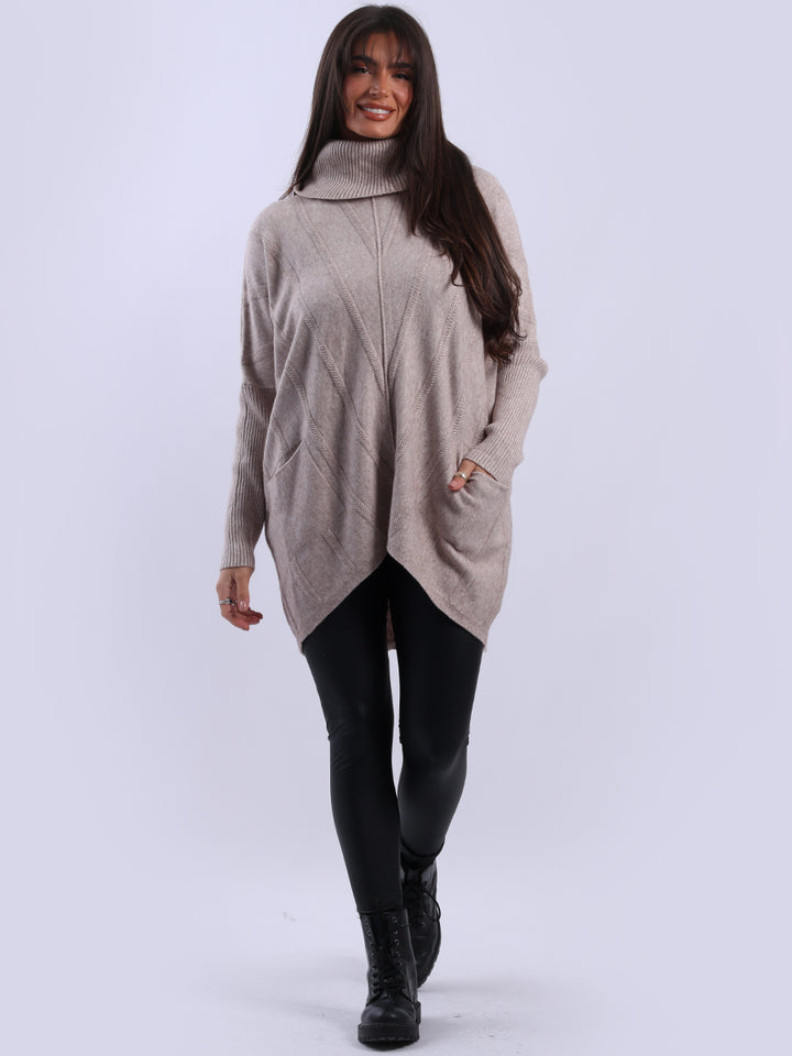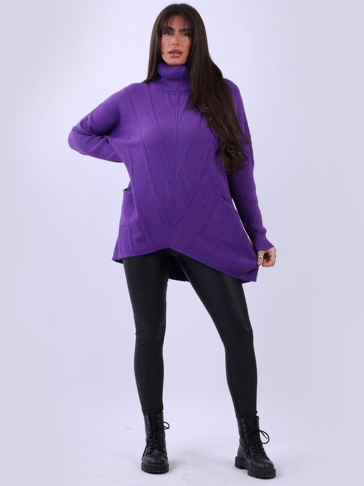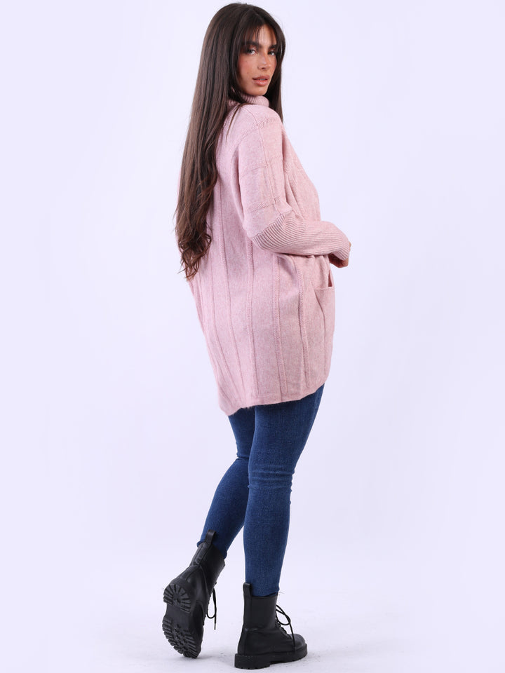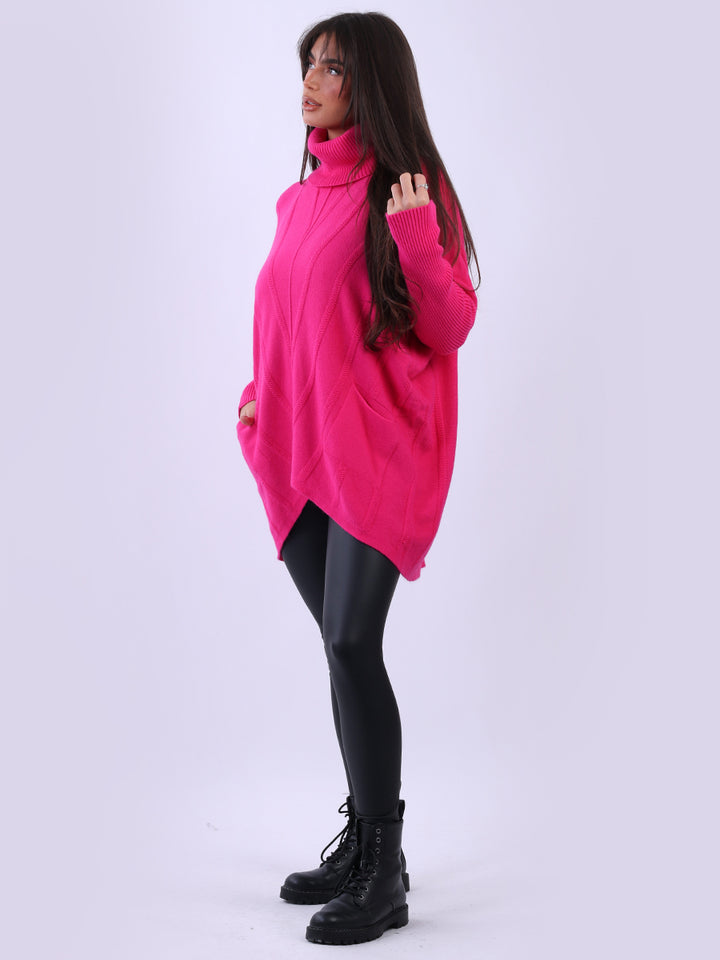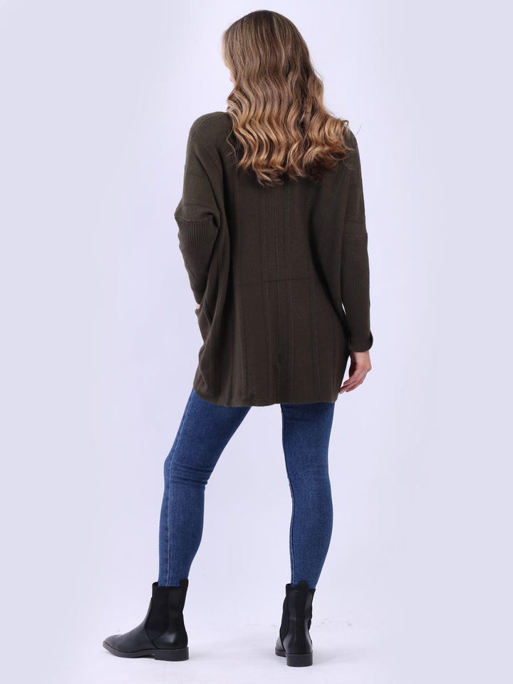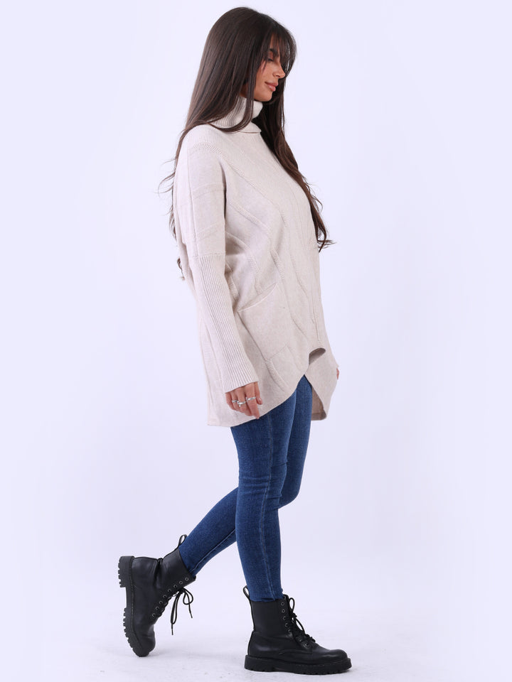 Clothes and jackets that impress and set a high standard for the ladies. Redwholesale loose fitted cable knit jumper has finest fabric that is chic and trendy with lush and characteristic cowl neckline, lagenlook plus size fit with functional front pockets and long sleeves. Earthy colors and bold finish that is highlight of the dressing up.