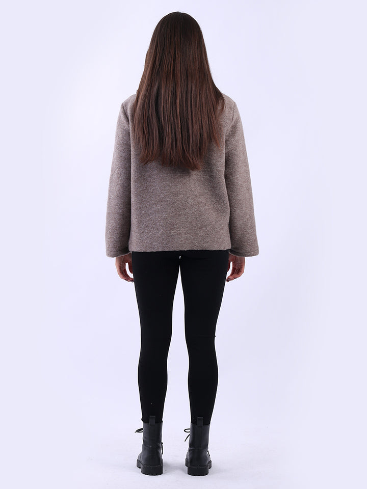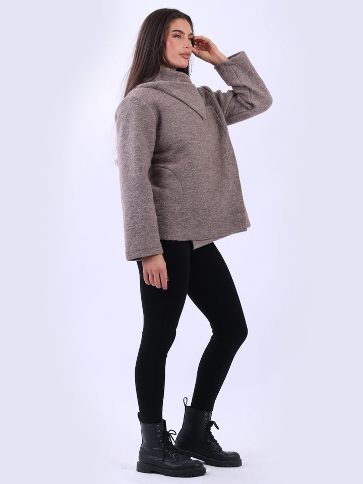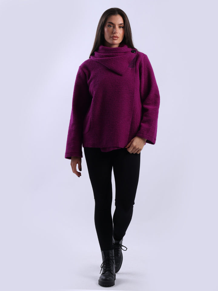 This unique woolen jacket features a stylishly cowl neckline and solid hue perfect for adding a touch of sophistication to any outfit. Its loose fit makes it comfortable and breathable, suitable for plus-size women looking for something both chic and cozy. Ideal for day-to-night transitions, it pairs beautifully with fitted trousers by Redwholesale.
