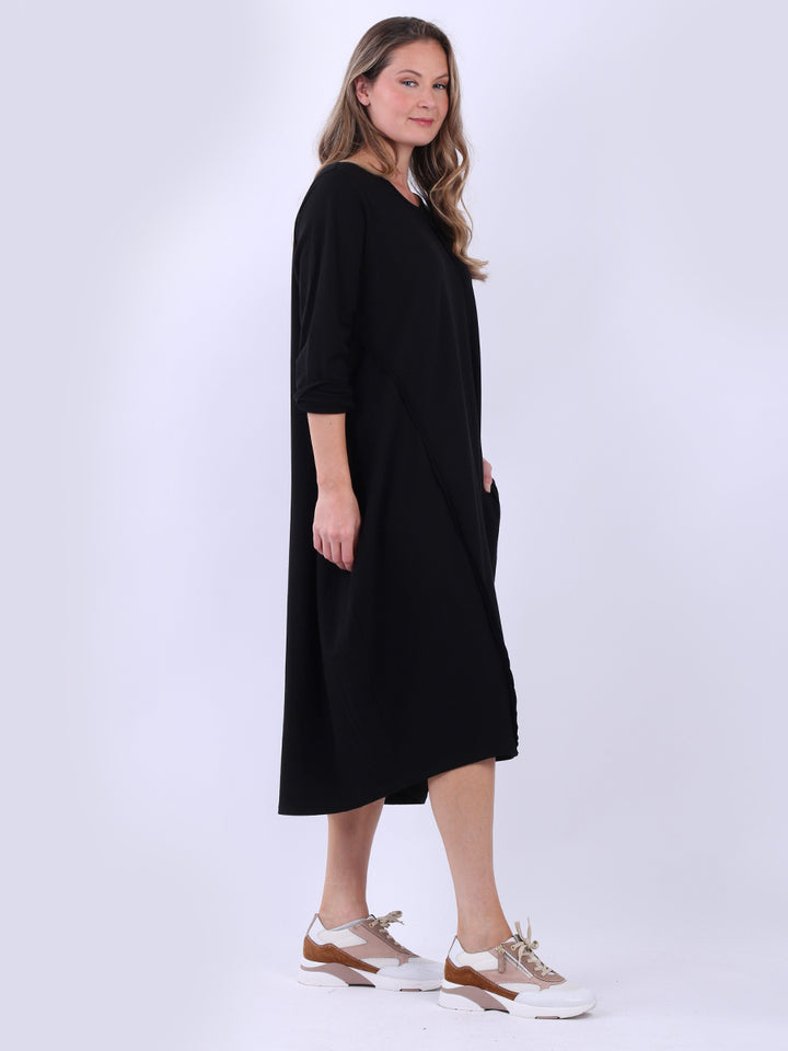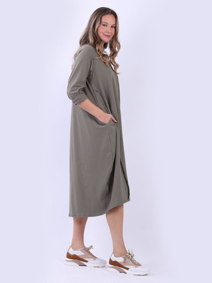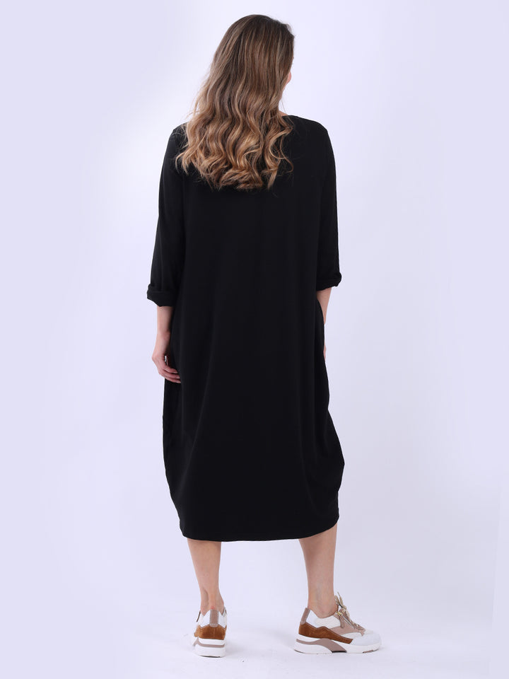 This solid lagenlook dress in plus size fit creates a sophisticated look for all women wearers. Cut from soft cotton fabric, it is perfect for fall fashion when layering is an option. Pair it with ankle boots and a hat for a head-turning appearance at any upcoming casual event.