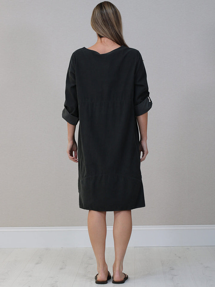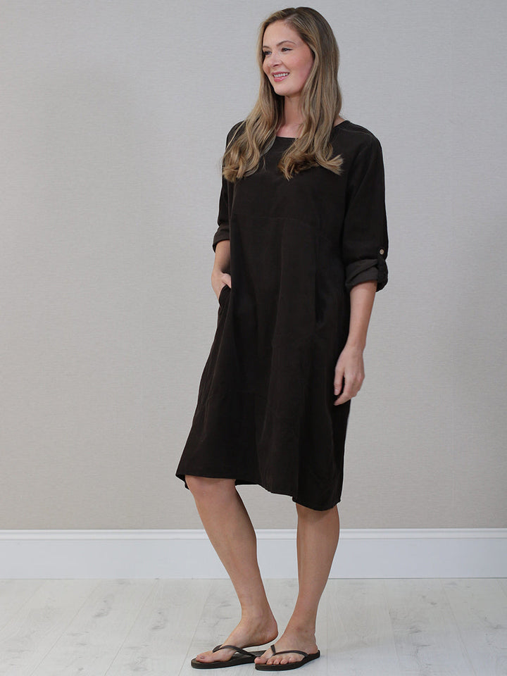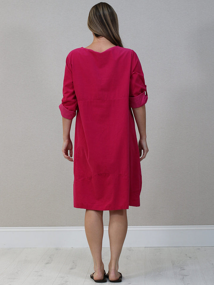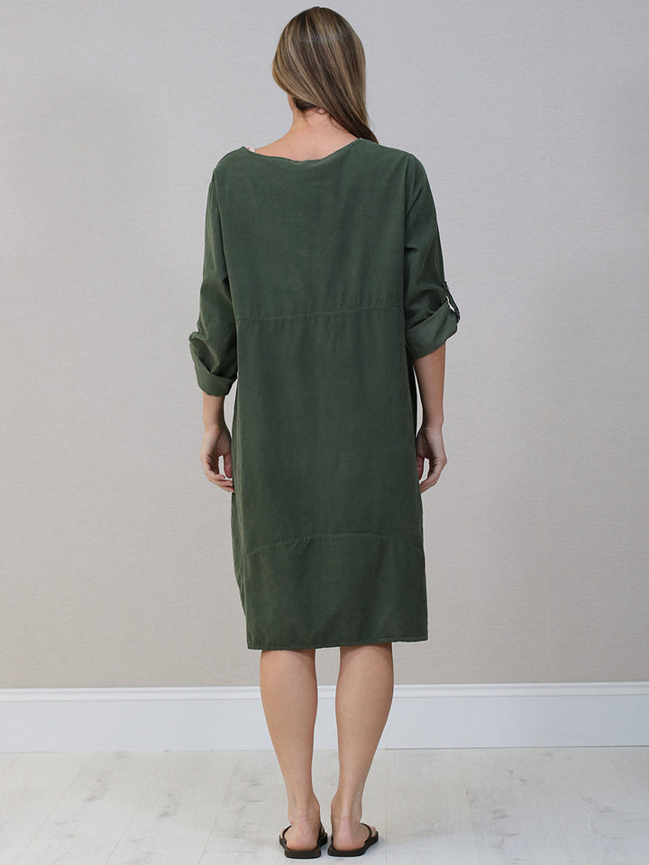 Italian Tabbed Sleeves Solid Corduroy Cotton Dress