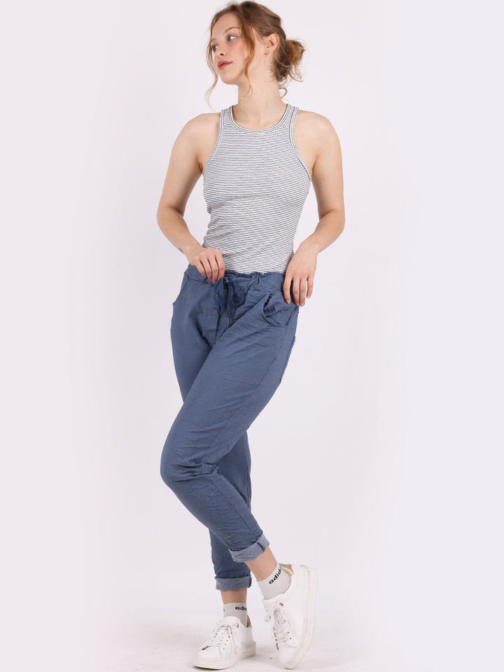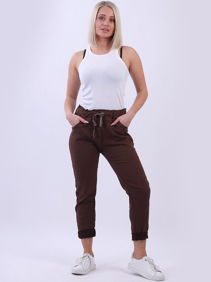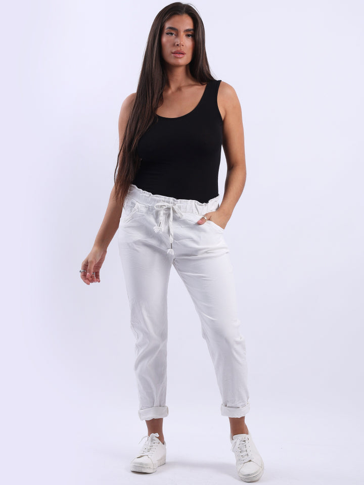 A wardrobe staple for women wearers that come with super comfort for customers in mind. Presenting Italian quality coupled with fashion boutique Manchester design with stretchable material, drawstring waist for easy customization, ankle kissing length for air light feeling functional side pockets are all features that make it the best choice always. Dress with florals and sandals.